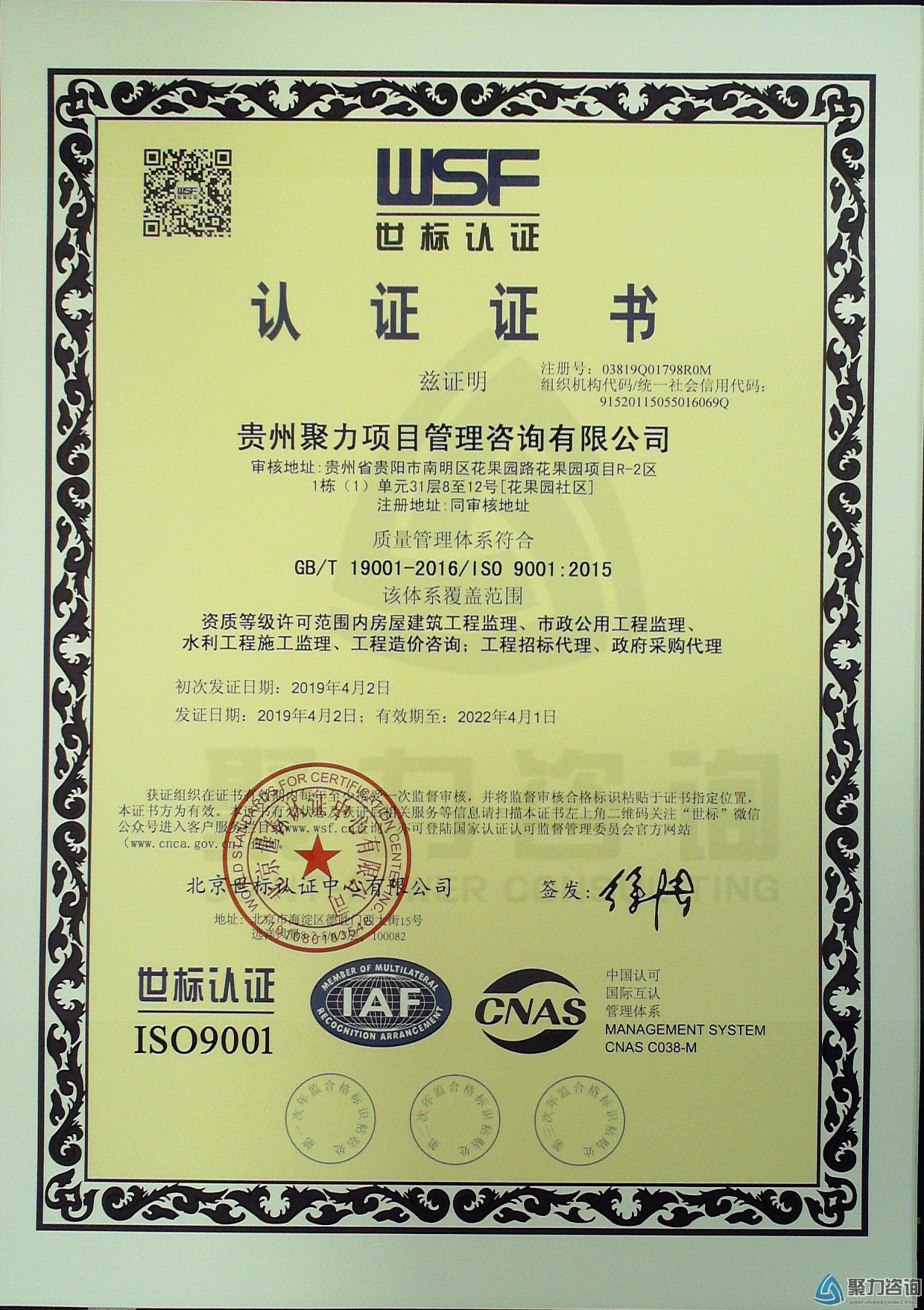 聚力咨询自成立以来,公司总经理龙丞先生高屋建瓴地提出了具有社会责任感和远见卓识的“绿色聚力”发展战略,公司在高度重视业务质量的同时,以人为本非常关注员工的职业健康安全,并积极倡导与环境相协调的可持续发展模式。公司自2018年7月启动ISO9001质量管理体系、ISO14001环境管理体系、ISO45001职业健康安全管理体系认证至今已九月有余,在公司的统筹安排下,各部门进一步完善了公司的规章制度,密切配合北京世标认证中心有限公司的有关工作,为通过体系认证奠定了坚实的基础。