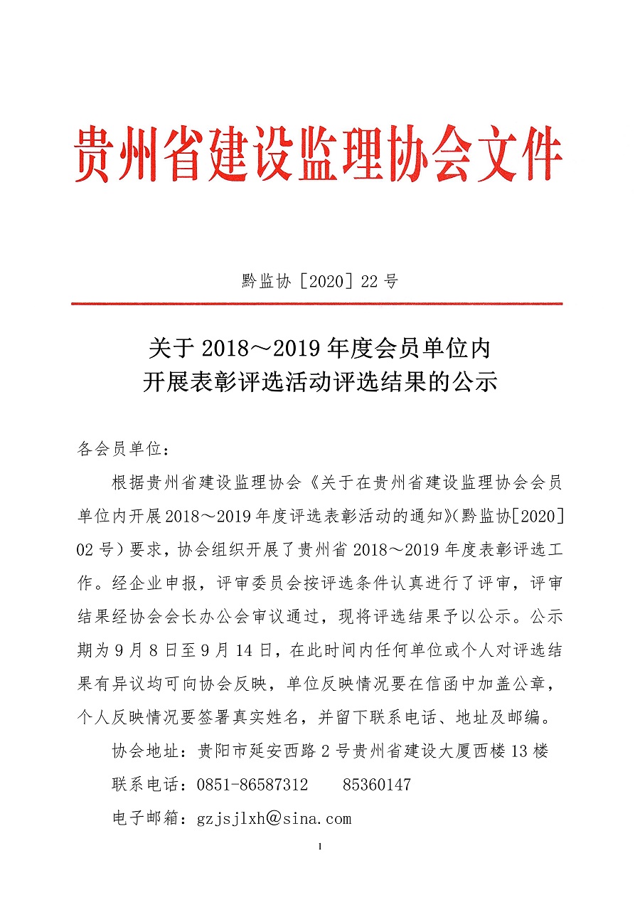 为鼓励贵州省建设监理企业积极开展创先争优活动,激发工程监理人员爱岗敬业热情,促进全省建设监理事业健康发展,贵州省建设监理协会在会员范围内组织开展了2018-2019年度先进企业及个人评选表彰活动。