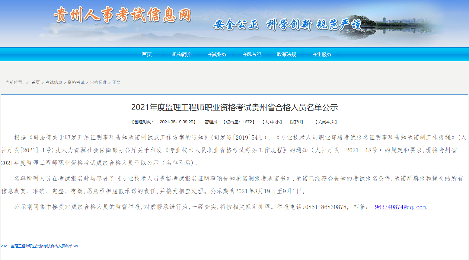 2021年8月19日,贵州人事考试信息网公布了《2021年度监理工程师职业资格考试贵州省合格人员名单公示》。经核查,我司勾朝卿、吕勇、张家兴、石友、林松五位同志顺利通过此次考试。